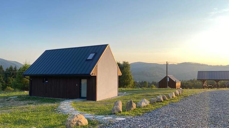 Das Ferienhaus im Folwark Soblówka - Domek AGAT bietet Platz für bis zu 6 Personen und verfügt über 3 gemütliche Schlafzimmer. Das Wohnzimmer ist mit einem Flachbild-TV ausgestattet und bietet einen herrlichen Bergblick. Die Küchenzeile ist mit einem Kühlschrank und einer Mikrowelle ausgestattet, so dass Sie Ihre eigenen Mahlzeiten zubereiten können. Im Badezimmer finden Sie entweder eine Badewanne oder eine Dusche. Handtücher und Bettwäsche werden gestellt, so dass Sie sich um nichts kümmern müssen.