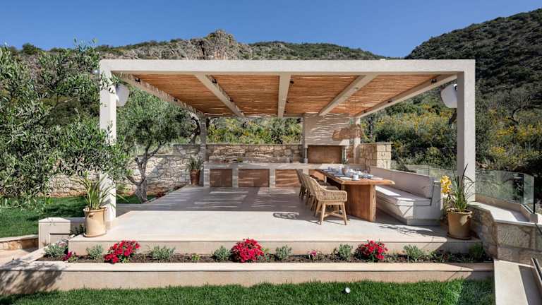 Die Foneas Bay Villa enthält eine voll ausgestattete Küche mit Kühlschrank und Geschirrspüler, was Möglichkeiten zur Selbstverpflegung bietet. Zusätzlich gibt es in der Unterkunft eine Bar sowie einen Grillbereich für die Gäste.