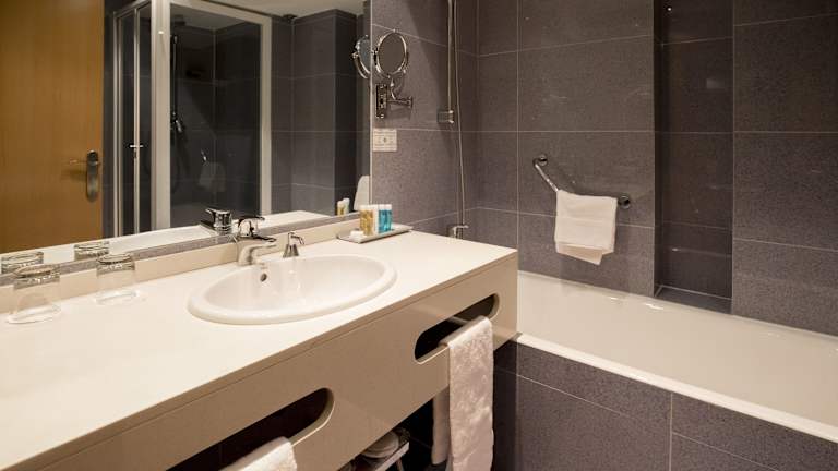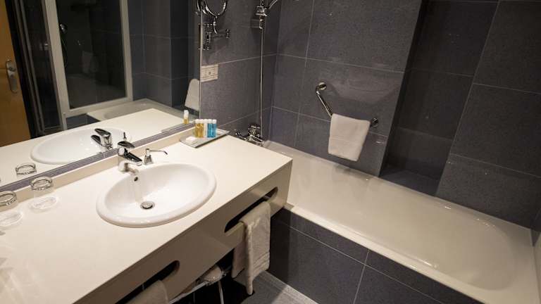 Die Zimmer sind mit Teppichböden und einer Klimaanlage ausgestattet und bieten ein Doppelbett oder ein Sofabett sowie Zustellbetten auf Anfrage. Zur Zimmerausstattung gehören ein Safe, eine Minibar, ein Kühlschrank, ein TV-Gerät mit Satelliten-/Kabelempfang, ein Radio, ein Telefon mit Direktwahl und kostenloses WLAN. Die Badezimmer sind mit Dusche, Badewanne, Haartrockner, Kosmetikspiegel und Bademänteln ausgestattet. Barrierefreie Zimmer sind ebenfalls verfügbar.