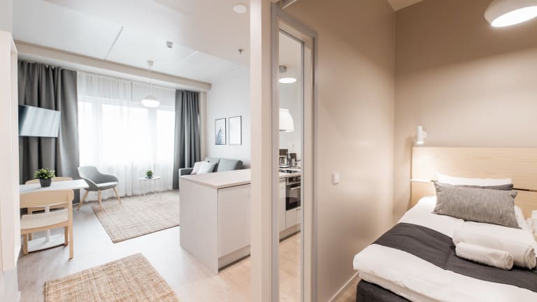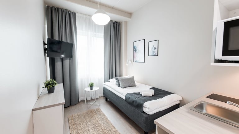 Das Aparthotel befindet sich im Zentrum von Vantaa, direkt neben dem Bahnhof Tikkurila. Von hier aus haben Sie eine direkte Verbindung zum Flughafen Helsinki-Vantaa, der in nur 17 Fahrminuten erreichbar ist. Das Wissenschaftszentrum Heureka liegt nur 10 Gehminuten entfernt und die Laurea University of Verdon Sciences erreichen Sie nach nur 350 m. Die zentrale Lage ermöglicht es Ihnen, die umliegenden Geschäfte, Restaurants und Sehenswürdigkeiten bequem zu erkunden.