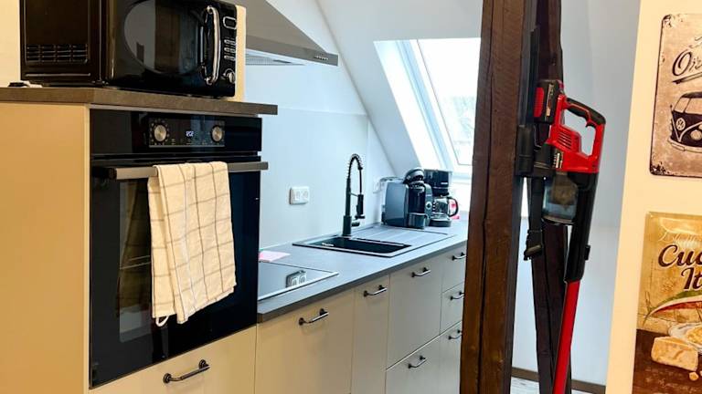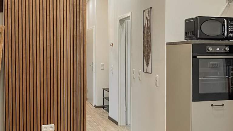 Die Ferienwohnung besteht aus 3 Schlafzimmern, einem Wohnzimmer und einer voll ausgestatteten Küche mit Kühlschrank und Kaffeemaschine. Ein Badezimmer mit Dusche und Haartrockner ist ebenfalls vorhanden. Handtücher und Bettwäsche werden bereitgestellt.