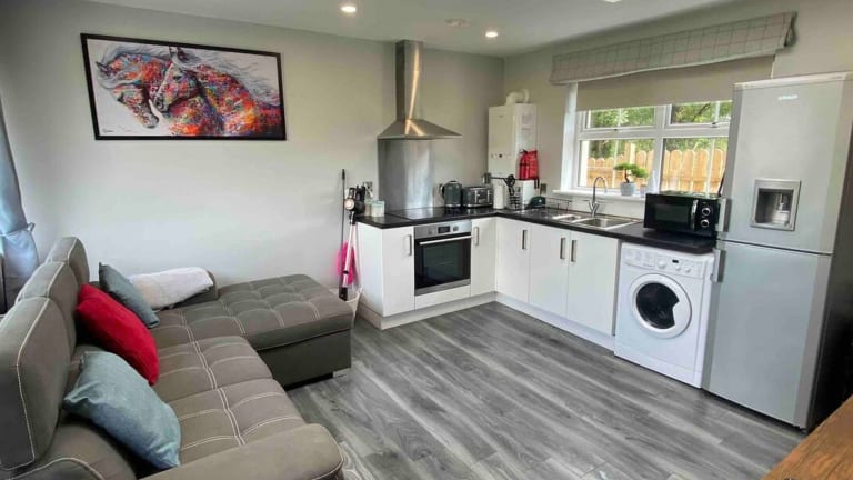 Das Apartment im Forest View Cottage & Private Hot tub verfügt über 1 Schlafzimmer, ein Wohnzimmer, einen Flachbild-Kabel-TV und eine voll ausgestattete Küche. Das Badezimmer ist mit einer Dusche und einem Whirlpool ausgestattet. Handtücher und Bettwäsche werden gestellt. Genießen Sie den Komfort und die Annehmlichkeiten des Apartments.