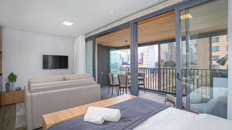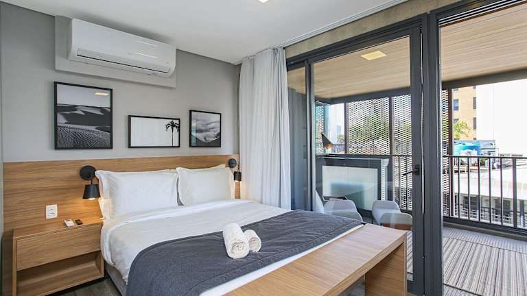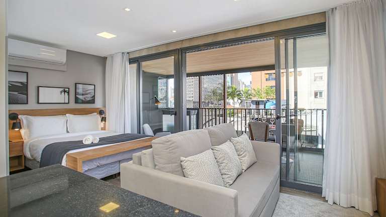 Die Unterkünfte im Huma Itaim sind modern und komfortabel eingerichtet. Jedes Apartment verfügt über eine voll ausgestattete Küche mit allen notwendigen Geräten wie Kühlschrank, Backofen, Mikrowelle und Kochfeld. Die Zimmer sind klimatisiert und verfügen über ein eigenes Badezimmer. Einige Unterkünfte bieten zudem einen gemütlichen Sitzbereich und einen Balkon, auf dem Sie die Aussicht genießen können.