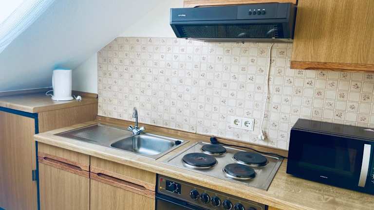 Die Wohneinheiten im Forsterhof sind alle mit einem eigenen Badezimmer, einer Dusche und einem Haartrockner ausgestattet. Zur Ausstattung der Küchen gehören unter anderem ein Kühlschrank, ein Ofen, eine Mikrowelle, eine Kaffeemaschine und ein Wasserkocher.