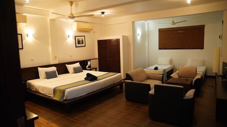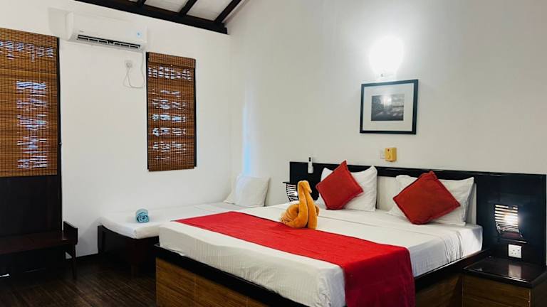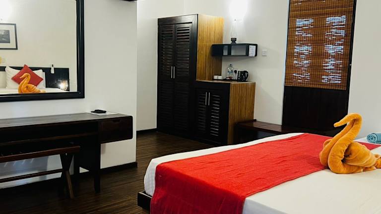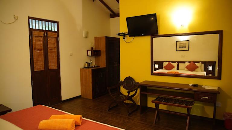 Das Fort Edge Resort in Unawatuna ist der perfekte Ort für einen entspannten Urlaub. Das Resort bietet einen Außenpool, ein Restaurant und kostenfreies WLAN in den öffentlichen Bereichen. Sie können Ihr Fahrzeug kostenlos auf dem Parkplatz abstellen. Das Resort befindet sich nur 5 Fahrminuten vom Bahnhof Unawatuna und 10 Fahrminuten vom Strand entfernt. Die Unterkünfte bieten einen herrlichen Blick auf die Berge und den Pool. Sie sind mit Klimaanlage, Flachbild-TV und eigenem Badezimmer mit Dusche ausgestattet. Ein Zimmerservice steht Ihnen zur Verfügung. Die 24-Stunden-Rezeption sorgt dafür, dass Sie sich rund um die Uhr umsorgt fühlen. In der Unterkunft stehen Ihnen auch Wäschemöglichkeiten und Grillmöglichkeiten zur Verfügung. Aktivitäten wie Wandern, Radfahren und Tauchen können für Sie organisiert werden.
