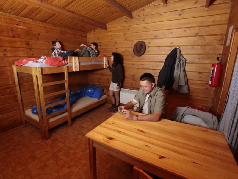 Jedes Haus des FORT FUN Abenteuercamp verfügt über Platz für sechs bis acht Personen auf drei beziehungsweise vier Etagenbetten. Die Hütten sind mit einer Dusche, einem WC und einer Heizung ausgestattet. Zusätzlich verfügen einige Hütten über eine kleine Kochnische mit Herdplatten und einem kleinen Kühlschrank.