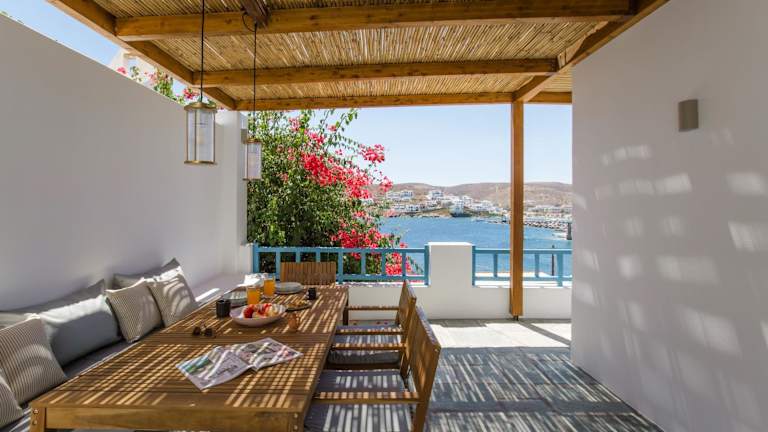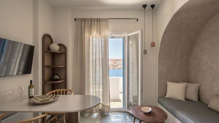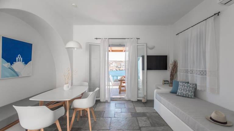 Fos Suites bietet Übernachtungsmöglichkeiten mit Klimaanlage sowie kostenlosem WLAN. Die Unterkunft verfügt über eine Terrasse mit Meerblick und bietet verschiedene Annehmlichkeiten für einen angenehmen Aufenthalt.