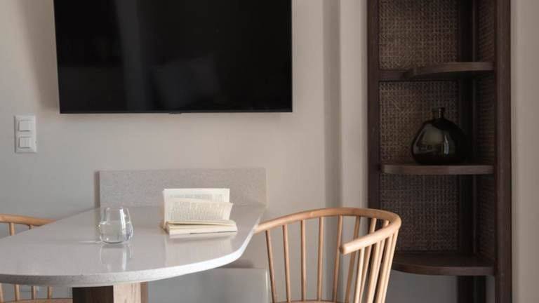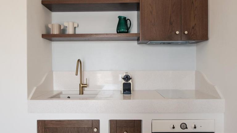 Die Zimmer in der Fos Suites sind mit einem Sitzbereich, einem Flachbild-TV und einer voll ausgestatteten Küche ausgestattet. Zu den Küchengeräten zählen ein Kühlschrank, ein Ofen, eine Herdplatte, ein Toaster, eine Kaffeemaschine und ein Wasserkocher. Ein eigenes Badezimmer mit einer Dusche und kostenlosen Pflegeprodukten gehört ebenfalls zur Ausstattung.