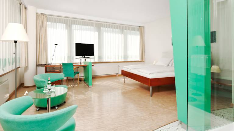 Das Hotel INNSIDE Munich Neue Messe verfügt über 134 helle, geräumige und elegante Zimmer mit moderner Ausstattung und hochwertigen Annehmlichkeiten. 98 INNSIDE-Zimmer (Queen Size-Bett), Einzel- oder Doppelbelegung (24 m²) 24 INNSIDE Premium-Zimmer (Queen Size-Bett), Einzel- oder Doppelbelegung (32 m²) 4 INNSIDE Premium-Zimmer (2 Einzelbetten), Einzel- oder Doppelbelegung (32 m²) 8 Lifestyle Suiten (King Size-Bett/Queen Size-Bett, 40 - 45 m²) Miteinander verbundene Zimmer auf Anfrage Fernseher mit Satellitenempfang und Radio Highspeed-Internetzugang (wird extra berechnet) WLAN-Zugang zum Internet (wird extra berechnet) Zimmerservice Verglaste Duschkabine Klimaanlage