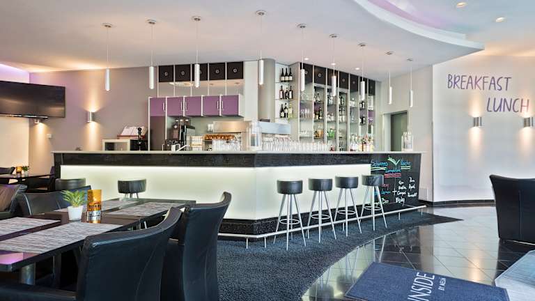 ABWECHSLUNGSREICHES FRÜHSTÜCKSBUFFET Ein abwechslungsreiches Frühstücksbuffet mit vielen gesunden Optionen HIGHLIGHTS: Im Sommer können Sie das Frühstück entweder in unserem klimatisierten Frühstücksraum oder auf der Terrasse einnehmen ÖFFNUNGSZEITEN: Montag bis Freitag von 6:30 bis 10 Uhr Am Wochenende von 6:30 bis 11 Uhr RESTAURANT Buffet mit Show-Cooking zur Mittagszeit. Am Abend à-la-carte-Service mit internationalen und bayerischen Spezialitäten ART DER KÜCHE: International und regional HIGHLIGHTS: Im Sommer auch Service auf der Terrasse AMBIENTE: Modern und gemütlich ÖFFNUNGSZEITEN: Mittagessen/Abendessen "TALK IN TIME" BAR Süße und deftige Snacks, Premium-Getränke, Cocktails, Gin Tonic ... HIGHLIGHTS: Die Bar ist sehr modern gehalten und spiegelt das weltoffene Flair der Stadt wider