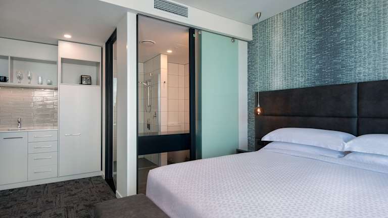 Die Zimmer im Four Points by Sheraton Auckland sind modern und komfortabel eingerichtet. Zur Ausstattung gehören ein Flachbild-Kabel-TV, ein Kühlschrank, ein Wasserkocher und ein Schreibtisch. Die klimatisierten Zimmer verfügen über ein eigenes Badezimmer mit Dusche und Haartrockner. Einige Zimmer sind rollstuhlgerecht und verfügen über barrierefreie Bäder.