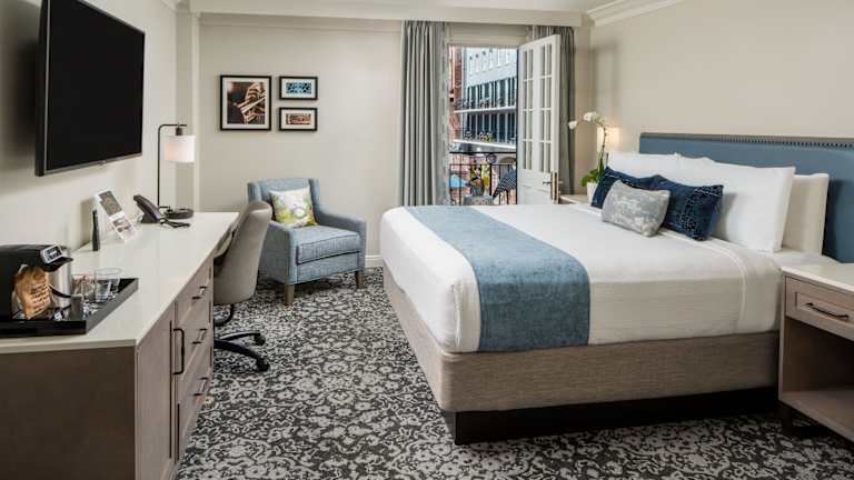 Die Zimmer im Four Points by Sheraton French Quarter Hotel bieten Ihnen einen eleganten Rückzugsort nach einem erlebnisreichen Tag in New Orleans. Genießen Sie den Blick auf den Innenhof oder das French Quarter von Ihrem Zimmer aus, das mit einem Flachbild-TV, einer Minibar und eleganten Holzmöbeln ausgestattet ist.