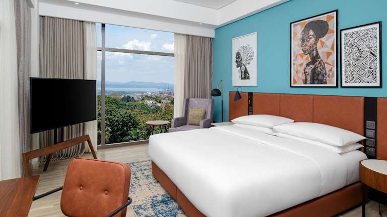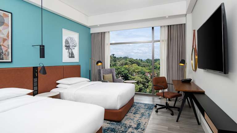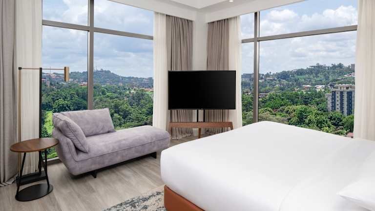 Die Zimmer im Four Points by Sheraton Kampala sind mit einem Schreibtisch, Klimaanlage, einem Safe sowie einem Flachbild-TV ausgestattet. Alle Zimmer sind schallisoliert und es gibt Behindertengerechte Ausstattung. Auch die Möglichkeit für einen Frühstücks-Behälter zum Mitnehmen ist gegeben.