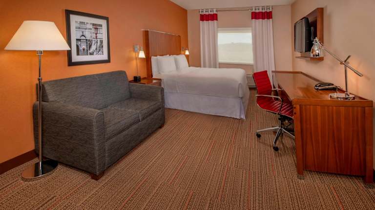 Die Zimmer im Hotel Four Points by Sheraton Newark sind komfortabel eingerichtet und bieten Annehmlichkeiten wie Klimaanlage, Heizung und einen Safe. Die Zimmer sind gut ausgestattet mit einem Doppelbett, einem Sofabett und einem Flachbildfernseher. Einige Zimmer verfügen auch über eine Küchenzeile mit Mikrowelle und Kaffeemaschine. Das Badezimmer ist mit einer Dusche und einer Whirlwanne ausgestattet.