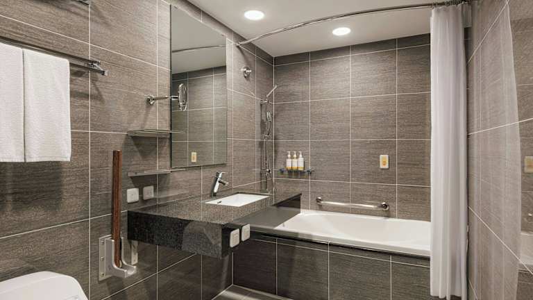 Die klimatisierten Zimmer sind mit Teppichböden, einem Sofabett, einem Safe, einem Schreibtisch und einem Kühlschrank ausgestattet. jedes Zimmer verfügt über ein eigenes Badezimmer mit Dusche und Badewanne sowie über Haartrockner und Kosmetikartikel. Zu den weiteren Annehmlichkeiten gehören ein Flachbild-TV, WiFi ohne Gebühr und Hausschuhe. Es sind auch rollstuhlgerechte Zimmer verfügbar.