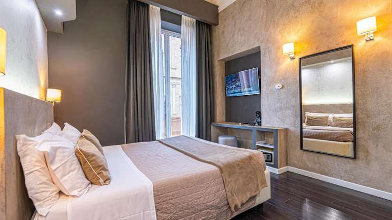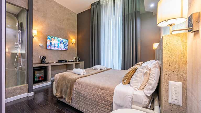Die Zimmer in den Four River Suites sind individuell gestaltet und bieten ein einzigartiges Dekor. Jedes Zimmer verfügt über einen LCD-TV und ein eigenes Badezimmer. Einige Zimmer bieten zudem einen eigenen Balkon, auf dem Sie den Charme Roms genießen können. In einigen der Suiten gibt es auch einen möblierten Sitzbereich, der Ihnen zusätzlichen Komfort bietet.