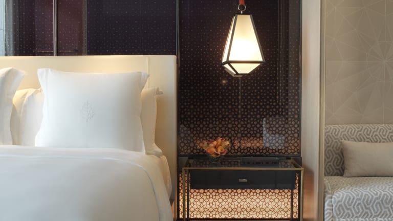 Die Zimmer im Four Seasons Hotel Kuwait at Burj Alshaya sind modern und elegant eingerichtet und verfügen über hochwertige Annehmlichkeiten. Das eichenparkettierte Zimmer bietet ein geschwungenes Sofa, einen wandmontierten TV und eine eigene Pantryküche mit Zubehör für Espresso und Tee. Die Badezimmer sind geräumig und verfügen über eine freistehende ovale Badewanne, eine separate Regendusche und ein Doppelwaschbecken. Jedes Zimmer ist mit steuerbarer Beleuchtung und Vorhängen ausgestattet, um eine angenehme Atmosphäre zu schaffen.