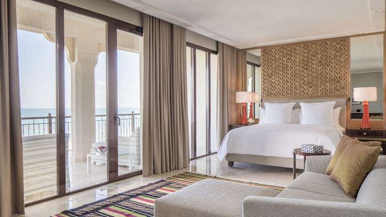Die Zimmer sind mit Klimaanlage, Heizung und Teppichböden ausgestattet und bieten einen Balkon oder eine Terrasse mit Meerblick. Jedes Zimmer verfügt über ein Doppelbett, Queensize-Bett oder Kingsize-Bett sowie über Annehmlichkeiten wie einen Safe, eine Minibar und einen Schreibtisch. Die Bäder sind mit Dusche, Badewanne und Whirlwanne ausgestattet und bieten Kosmetikartikel.