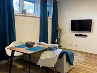 Die Ferienwohnung verfügt über ein Schlafzimmer, ein Wohnzimmer mit Flachbild-TV, eine gut ausgestattete Küchenzeile sowie ein Badezimmer mit Dusche und kostenlosen Pflegeprodukten. Handtücher und Bettwäsche werden bereitgestellt. Das Objekt ist eine Nichtraucherunterkunft und es bestehen bezüglich Hygiene strenge Richtlinien, die anwenden werden.