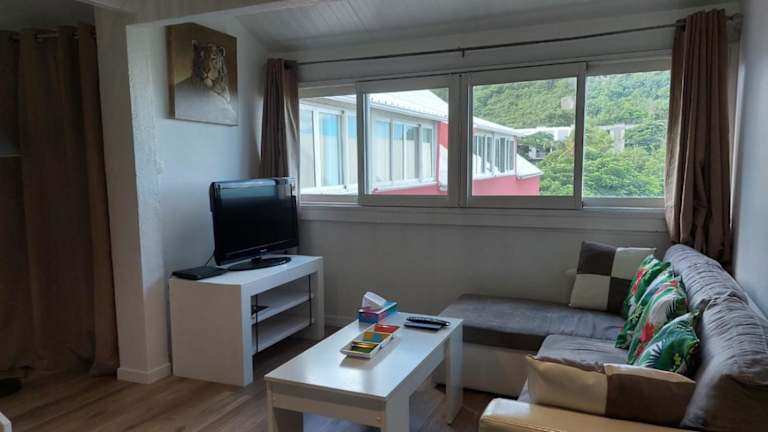 Das klimatisierte Apartment im Charmant Duplex à Marigot Galisbay verfügt über 2 Schlafzimmer, ein Wohnzimmer und eine voll ausgestattete Küche mit Kühlschrank und Kaffeemaschine. Es gibt auch 2 Badezimmer mit Dusche und kostenlosen Pflegeprodukten. Handtücher und Bettwäsche werden im Apartment gestellt, sodass Sie sich um nichts kümmern müssen.