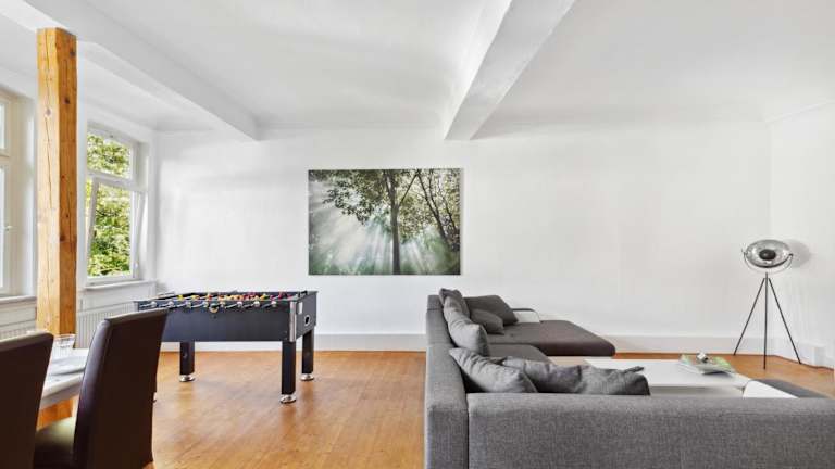 Die Ferienwohnung Friedberger Charme bietet Platz für bis zu 6 Personen und verfügt über eine Gemeinschaftslounge, kostenlosen WLAN-Zugang sowie eine Gemeinschaftsküche. Ein privater Parkplatz ist ebenfalls vorhanden. Freizeitmöglichkeiten wie Wandern und Radfahren sind in der Nähe verfügbar. Junggesellen- oder Junggesellinnenabschiede sind in der Unterkunft nicht gestattet.