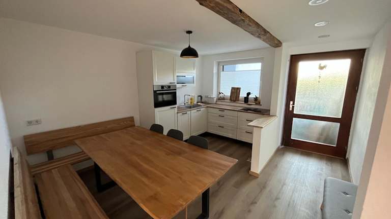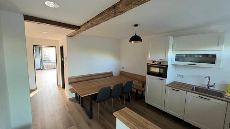 Die frisch renovierte Ferienwohnung bietet einen Blick auf den Garten und verfügt über einen Balkon sowie eine Terrasse. Kostenlose Privatparkplätze stehen den Gästen zur Verfügung.