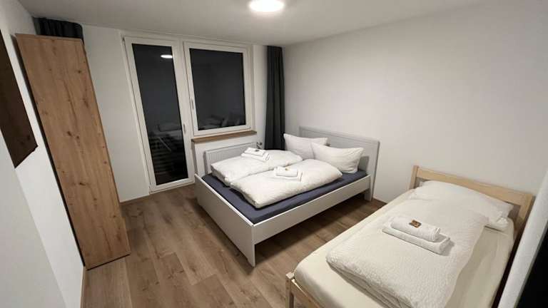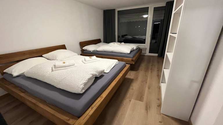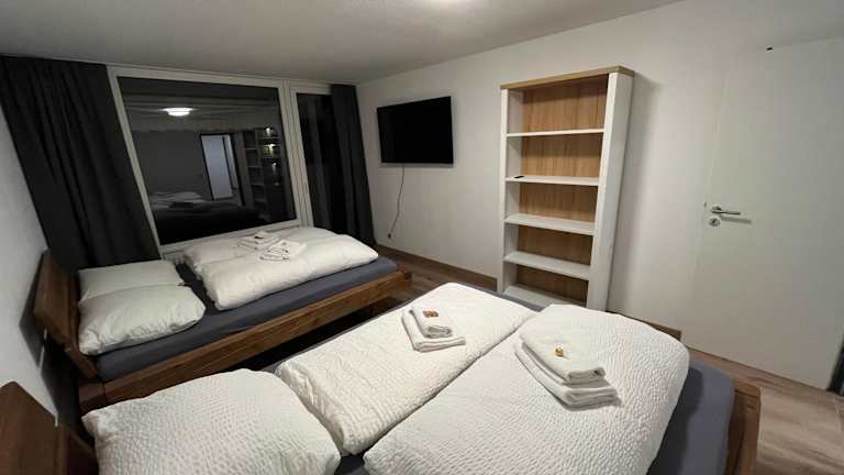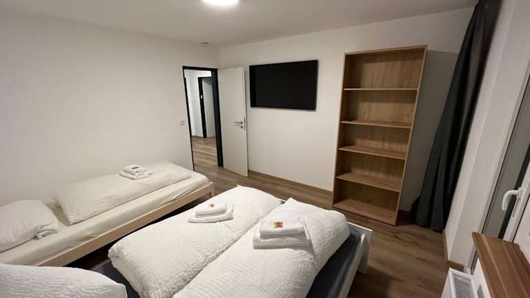 Die Ferienwohnung besteht aus 3 Schlafzimmern, einem Wohnzimmer und einer voll ausgestatteten Küche, die mit einem Kühlschrank und einer Kaffeemaschine ausgestattet ist. Es gibt 2 Badezimmer, die mit einer Dusche und einem Haartrockner ausgestattet sind. Handtücher und Bettwäsche werden zur Verfügung gestellt.