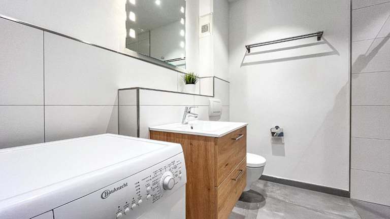 Die Ferienwohnung umfasst zwei Schlafzimmer und ist mit einem TV mit Kabelkanälen ausgestattet. Eine voll ausgestattete Küche mit Kühlschrank, Geschirrspüler, Waschmaschine, Ofen und Mikrowelle steht den Gästen zur Verfügung. Es wird darauf hingewiesen, dass Bettwäsche und Handtücher nicht im Preis enthalten sind und gegen Gebühr gemietet werden können. Bei einem Aufenthalt sind hauptsächlich Selbstversorger gefragt.