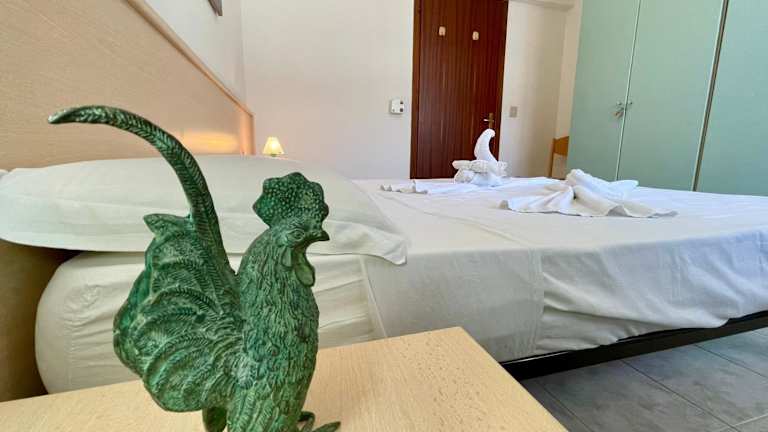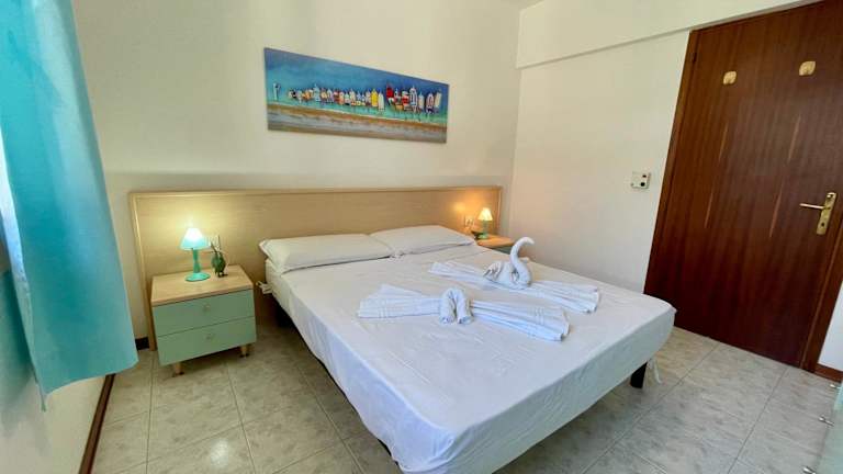 Die klimatisierte Ferienwohnung bietet Platz für bis zu 6 Personen und besteht aus zwei Schlafzimmern, einem Wohnzimmer sowie einer voll ausgestatteten Küche mit Kühlschrank und Wasserkocher. Ein Badezimmer mit Dusche und Haartrockner ist ebenfalls vorhanden. Handtücher und Bettwäsche werden bereitgestellt.
