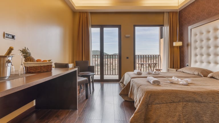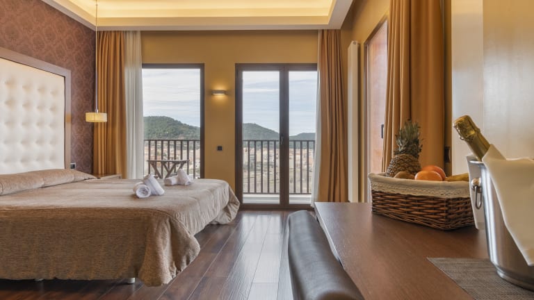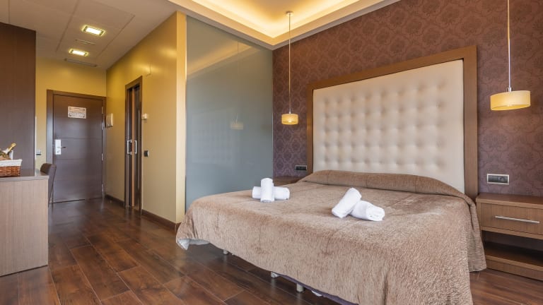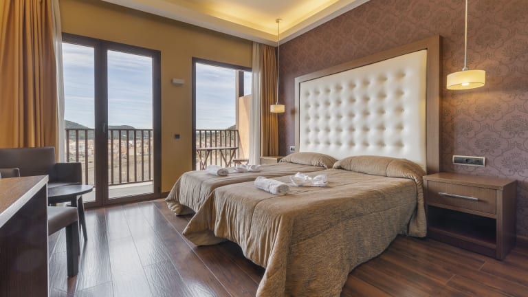 Die Zimmer im Hotel Fuente del Miro sind elegant gestaltet und bieten modernen Komfort. Jedes Zimmer ist klimatisiert und verfügt über einen Flachbild-TV, kostenfreien Internetzugang und viel Tageslicht. Die minimalistische Einrichtung sorgt für eine entspannte Atmosphäre, in der Sie sich wie zu Hause fühlen können.