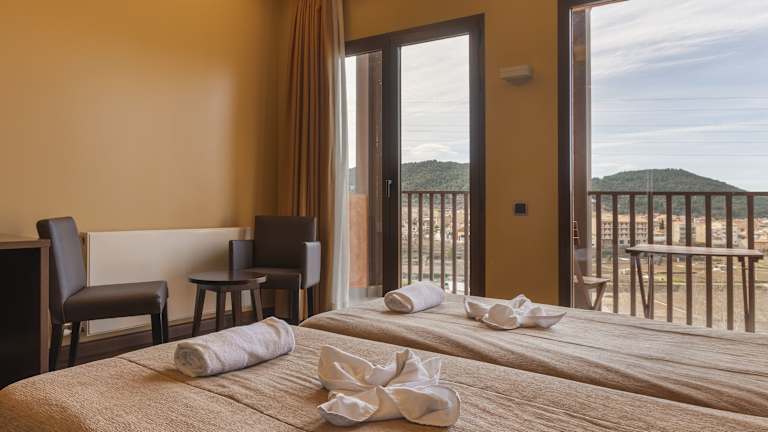 Das Hotel Fuente del Miro in Valderrobres, Aragón, bietet elegante und klimatisierte Zimmer mit moderner Ausstattung und kostenfreiem Internetzugang. Das Restaurant serviert traditionelle aragonesische Küche und die Bar lädt zum Verweilen ein. Das Hotel ist der perfekte Ausgangspunkt, um das Naturschutzgebiet Ports zu erkunden. Das freundliche Personal steht Ihnen gerne mit Informationen über Wander- und Radwege in der Region zur Seite.