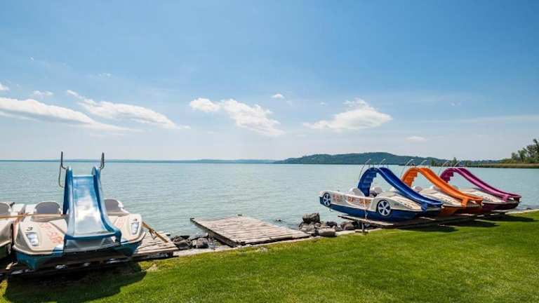 In unmittelbarer Nähe des Füred Luxury Nyaralóház können Sie den Strand Eszterhazy besuchen und am Ufer des Balaton entspannen. Die Umgebung bietet auch zahlreiche Möglichkeiten für Wassersportaktivitäten wie Schwimmen, Segeln und Windsurfen. Erkunden Sie die Umgebung und besuchen Sie das Balatonfured Kisfaludy oder die Abtei Tihany, um die lokale Kultur und Geschichte kennenzulernen.