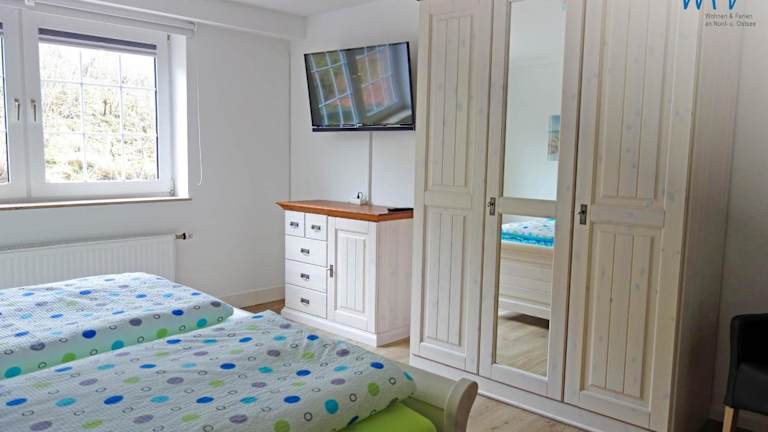 Die Ferienwohnung besteht aus drei Schlafzimmern sowie einem Wohnzimmer und einer voll ausgestatteten Küche, die mit einem Kühlschrank und einem Wasserkocher ausgestattet ist. Zu den weiteren Einrichtungen gehören zwei Badezimmer mit Dusche und Haartrockner sowie ein Fernseher. Unterkunft ist für Nichtraucher und verfügt über Gartenmöbel.