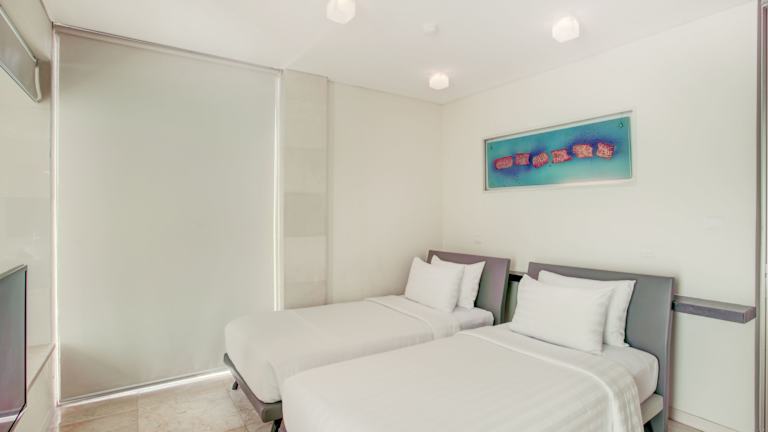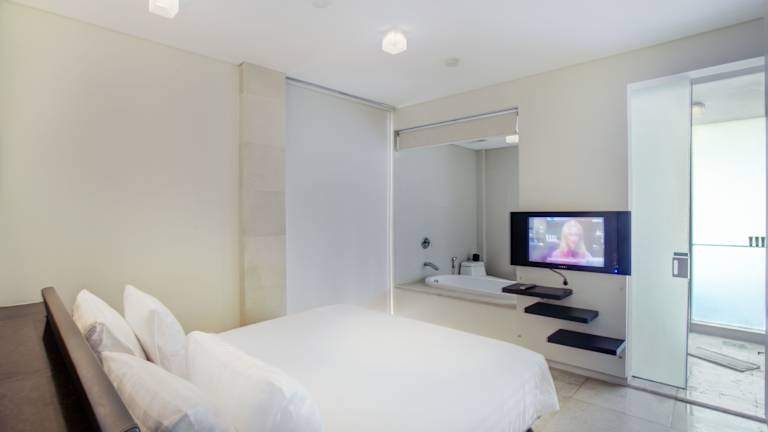 Die stilvollen Apartments im FuramaXclusive Ocean Beach Seminyak Bali sind in einem modernen weißen Dekor gehalten, das das Tageslicht reflektiert. Die Apartments verfügen über eine moderne Ausstattung, darunter ein Flachbild-TV, ein DVD-Player und eine Klimaanlage. Zur Entspannung können die Gäste das Wellnesscenter mit Massageangeboten nutzen oder am Strand reiten. Das Hotel bietet auch einen 24-Stunden-Concierge-Service und kostenfreie Parkplätze.