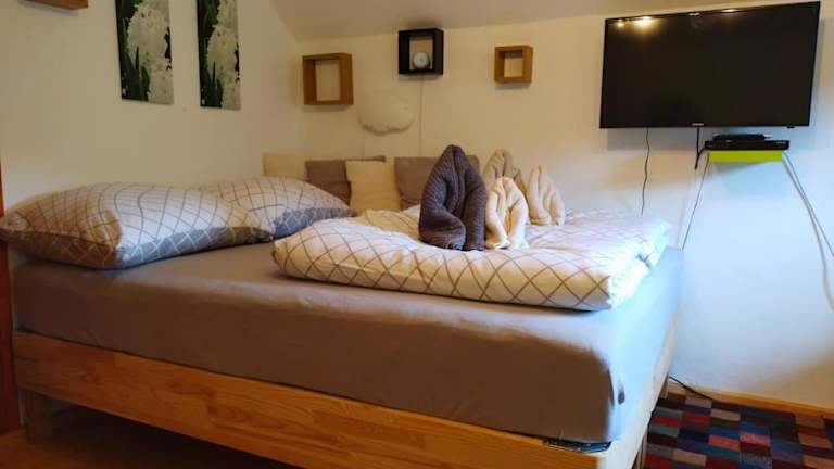 Die Ferienwohnung besteht aus einem Schlafzimmer und einem Badezimmer, das mit einer Dusche ausgestattet ist. Zudem ist die Wohnung mit einem Satelliten-Flachbild-TV ausgestattet. Handtücher und Bettwäsche sind ebenfalls vorhanden.