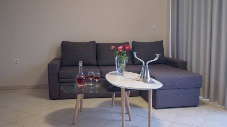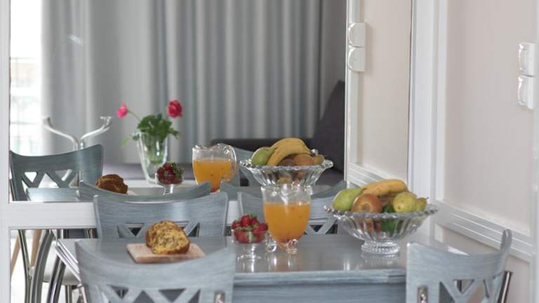 Die Wohneinheiten sind mit einem Sitzbereich, einem Flachbild-TV und einer voll ausgestatteten Küche ausgestattet, die einen Kühlschrank und einen Ofen beinhaltet. Zudem verfügen sie über ein eigenes Badezimmer mit Badewanne oder Dusche sowie einem Haartrockner. Jede Einheit bietet einen Balkon mit Blick auf das Meer.