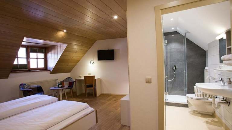 Die Zimmer im Gästehaus am Westtor sind gemütlich eingerichtet und mit einem TV ausgestattet. Bettwäsche und Handtücher werden gestellt, um Ihren Aufenthalt so angenehm wie möglich zu gestalten.
