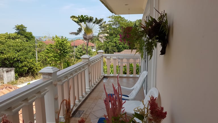 An einem leicht abfallenden Hang, 40 m über dem Meeresspiegel, haben sie einen sicheren Blick auf die süd/östliche Küste von Phuket. Unser Gästehaus befindet sich in einer der niederschlagsärmsten Region im südlichen Phuket, abseits vom Lärm überlaufener Urlaubshochburgen (wenn gewünscht jedoch einfach zu erreichen) können sie hier ihren Erholungs- oder Familienurlaub richtig genießen. Unser Zuhause liegt im Ort Baan Sai Yuan. Er grenzt direkt an den Ort Nai Harn, mit einem der schönsten Badestränden von Phuket (Nai Harn Beach) an dem sich auch das Phuket Royal Yacht Hotel befindet. Der flach abfallende Strand bietet Nichtschwimmern eine optimale Gelegenheit das Baden in vollen Zügen zu geniesen. Eine angrenzende, im Sandstrand befindliche Lagune die mit dem Meer durch einen Zulauf verbunden ist, ist der optimale Plansch- und Schwimmbereich für Kinder. Dahinter befindet sich eine recht grosse Salzwasser-Lagune, gleich einem See, mit einer Insel und Kinderspielplatz. Diese Lagune ist von einer beleuchteten Promenade umsäumt (keine Geschäfte, Natur pur) die zu sportlichen Aktivitäten (Jogging, Scating, Walking, etc.) morgends oder abends gerne genutzt wird. Oberhalb des Standes befindet sich eine Bewaldung mit schattigen Plätzen zum relaxen, ohne das man Liegen anmieten muss. Direkt angrenzend gibt es zahlreiche Garküchen und Restaurants die zum geniesen von einheimischen und internationalen Speisen einladen. Der Ort Nai Harn bietet ebenfalls eine Vielzahl von Restaurants (Thai, Deutsch, Italienisch, International). Einige sind echte Feinschmeckertipps. Ein paar Fahrminuten von Nai Harn liegt Rawai Beach mit vielen weiteren Restaurants. Auch einige Bars oder Diskotheken sind vorhanden, aber nicht vergleichbar mit den Urlaubshochburgen und dem nächlichen Treiben von Patong oder Kata. Kata selbst liegt nur 5 Fahrminuten (ca. 4-5 km) von uns entfernt. Einkaufsmöglichkeiten gibt es überall vor Ort (7/eleven Shops, kleinere Geschäfte, Bäckereien und thailändische Wochenmärkte in nächster Umgebung). Um den nahe gelegenen Chalong Kreisverkehr (ca. 2-3 km entfernt) befinden sich mehrere Supermärkte (Tesco/Lotus,Villa Market, etc.) und weitere Einkaufsgelegenheiten. Am Chalong Bay gibt es mehrere klassische, thailändische Seafood Restaurants. Rundum, ein Ort für einen erholsamen und abwechslungsreichen Urlaub.