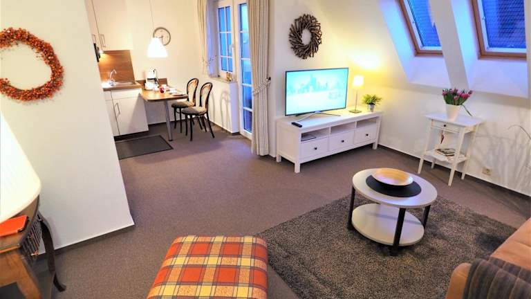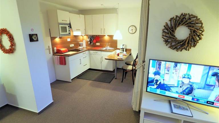 In der Umgebung des Blauort12 finden Sie zahlreiche Geschäfte und Restaurants, in denen Sie lokale Spezialitäten probieren können. Die komplett ausgestattete Küche in Ihrem Apartment bietet Ihnen jedoch auch die Möglichkeit, Ihre eigenen Mahlzeiten zuzubereiten. Genießen Sie Ihre Speisen auf dem Balkon oder im gemütlichen Wohnzimmer.