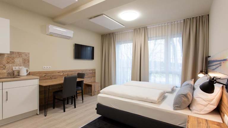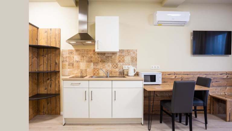 Die klimatisierten Zimmer im Gästehaus - Boardinghouse Magnetsried sind komfortabel eingerichtet und verfügen über einen Balkon, der Ihnen eine schöne Aussicht bietet. Jedes Zimmer ist mit einem Flachbild-Sat-TV, einem Sitzbereich, einer Küchenzeile und einem eigenen Bad mit kostenfreien Pflegeprodukten und einer Dusche ausgestattet. Bettwäsche und Handtücher werden gestellt, um Ihren Aufenthalt so angenehm wie möglich zu gestalten.