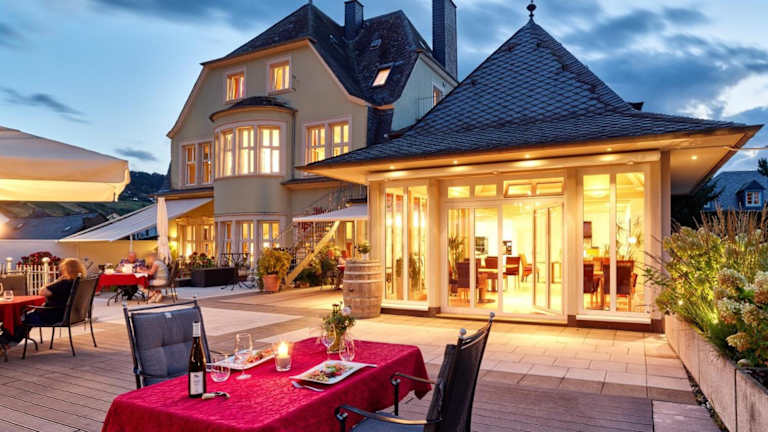 Das Gästehaus & Weingut Clüsserath-Weiler in Trittenheim ist ein familiengeführtes 4-Sterne-Hotel, das direkt an der Moselpromenade liegt und einen atemberaubenden Panoramablick auf den Fluss und die umliegenden Weinberge bietet. Mit kostenfreiem WLAN, komfortablen Zimmern und einer Reihe von Annehmlichkeiten ist dies der perfekte Ort, um die Schönheit der Moselregion zu genießen.