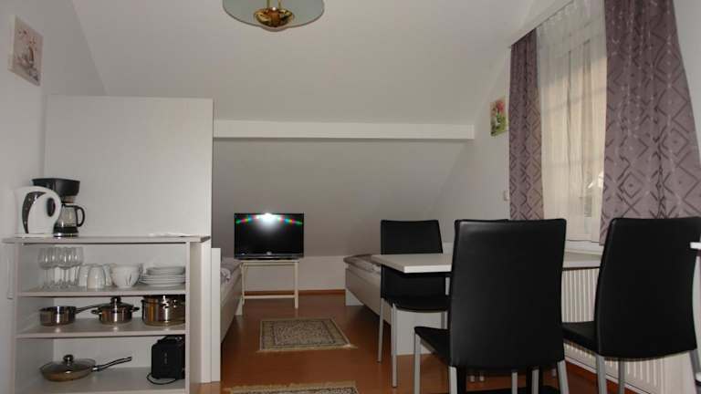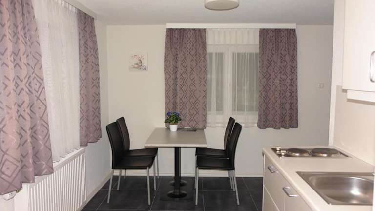 Die Wohneinheiten sind mit einer voll ausgestatteten Küchenzeile ausgestattet, die eine Herdplatte, einen Kühlschrank, einen Toaster, eine Kaffeemaschine und einen Wasserkocher umfasst. Es ist ein Essbereich vorhanden, der den Gästen eine Selbstversorgung ermöglicht.