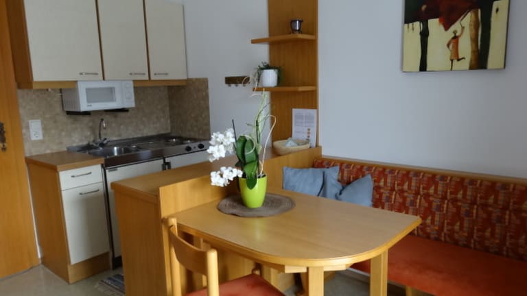 Apartment # 1: Kleines 2 Zimmer Apartment (ca. 30 m²) mit Vorraum und Balkon. Genau richtig für einen kuscheligen Urlaub zu zweit oder als Zusatzapartment zu einem unserer größeren wenn mehr Platz für Freunde/Familie benötigt wird. Apartment # 2: Durch den getrennten Ess-/Wohn und Schlafbereich ideal für einen entspannten Urlaub. Ob Eltern mit Kind oder mit Freunden unterwegs, durch die Zustellbettmöglichkeit in diesem Apartment (ca. 40 m²) können Sie den vorhandenen Platz ideal nutzen und zugleich Ihre Urlaubskasse schonen. Apartment # 3: Dieses Apartment (ca. 48 m²) bietet die Möglichkeit 6 Personen in 3 getrennten Schlafzimmern unter zu bringen. Falls Ihre Reisegruppe doch größer sein sollte, kann ein Zustell- oder Babybett in der Wohnung untergebracht werden. Alternativ können Sie auch ohne weiteres eines unserer kleineren Apartments für zusätzlichen Platz buchen.