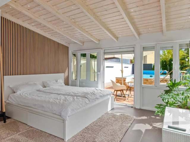 Die Unterkunft umfasst ein Schlafzimmer und ein Badezimmer. Zur Ausstattung gehören Bettwäsche, Handtücher, ein Flachbild-TV sowie ein Essbereich. Die voll ausgestattete Küche ermöglicht eine unabhängige Selbstversorgung. Zudem steht eine Terrasse mit Blick auf den Pool zur Verfügung.
