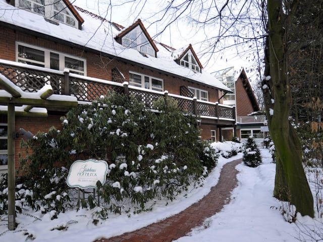 Die 3* Dependance vom Gutshof "Hotel Restaurant Hof Hueck" im Kurpark steht mit seinen 27 großzügigen Zimmern, ebenfalls im Grünen, den nur 3 Gehminuten vom Fachwerkhaus entfernt für Erholung, Wohlfühlen und Gemütlichkeit.