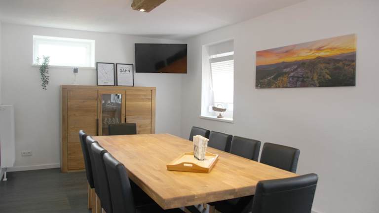 Das Gästehaus Nebenan in Dahn ist die perfekte Unterkunft für einen entspannten Aufenthalt. Mit einem schönen Garten, einer Terrasse und einer gemütlichen Bar bietet es alles, was Sie für einen angenehmen Urlaub benötigen. Das kostenfreie WLAN und der Stadtblick runden das Angebot ab. Das Ferienhaus verfügt über 4 Schlafzimmer, eine gut ausgestattete Küche und einen komfortablen Wohnbereich. Handtücher und Bettwäsche werden gestellt und kostenfreie Privatparkplätze sind vorhanden. Genießen Sie die schöne Umgebung und nutzen Sie den Grill für gemütliche Abende im Freien.