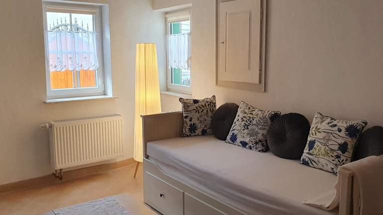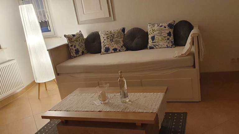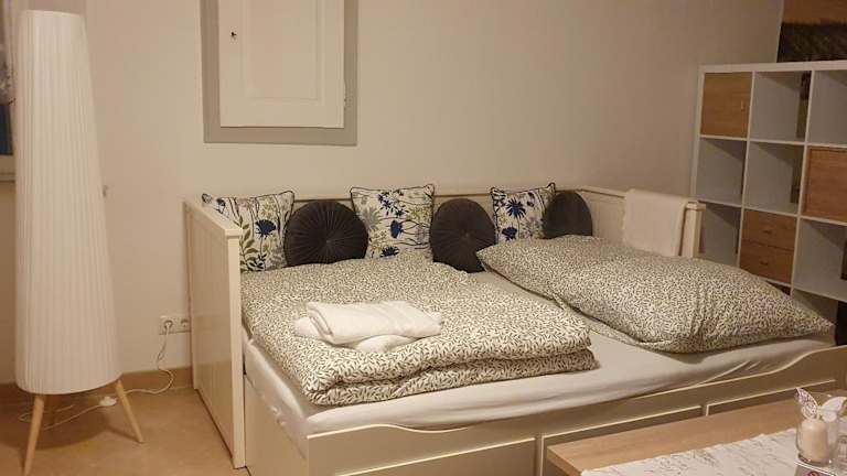 Die Ferienwohnung umfasst ein Schlafzimmer, ein Wohnzimmer sowie eine voll ausgestattete Küche, die mit einem Kühlschrank und einer Kaffeemaschine ausgestattet ist. Des Weiteren gibt es ein Badezimmer mit Dusche und Haartrockner. Handtücher und Bettwäsche sind in der Unterkunft vorhanden.