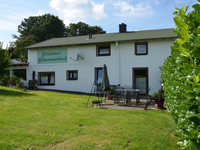 Das „Gästehaus Schwarzenbach“ liegt am Rand des Stadtzentrums von Halver, in einer ruhigen Grünanlage. Es stehen komplett und gemütlich eingerichtete Einzel-, Doppel- und Dreibettzimmer zur Verfügung. Die Doppelzimmer verfügen über Doppelbetten, die bei Bedarf auch getrennt gestellt werden können. Auch ist je Zimmer ein Sat-TV mit Flachbildschirm, Sitzgelegenheit und Tisch vorhanden. Bettwäsche und Handtücher sind im Preis enthalten. In allen Bädern finden Sie Handseife und einen Haartrockner. Ein Internetzugang ist über W-LAN kostenfrei möglich. Alle Zimmer sind im Jahre 2010 neu renoviert, mit Dreifachverglasung versehen worden sowie mit Dusche und WC ausgestattet. Eine komplett eingerichtete Küche mit Kühlschrank, Herd und Backofen, Wasserkocher, Mikrowelle, Toaster, Kaffeemaschine und Eierkocher steht im Erdgeschoss für alle Bewohner zur Verfügung. Dazu gehört auch ein Aufenthaltsraum mit Sat-TV und eine Terrasse mit Grillmöglichkeit. Geschirrtücher sind vorhanden. Preise: Bei Aufenthalt von 1 bis 2 Nächten: EZ 36 € / DZ 28 € p. P. Bei Aufenthalt ab 3 Nächten: EZ 26 € / DZ 23 € p. P. Bettwäsche und Handtücher inklusive.
