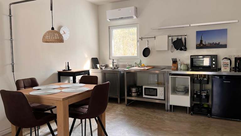 Das Ferienhaus bietet ein Schlafzimmer, ein Wohnzimmer und eine voll ausgestattete Küchenzeile mit Kühlschrank und Kaffeemaschine. Es sind zwei Badezimmer mit Dusche und kostenlosen Pflegeprodukten vorhanden. Handtücher und Bettwäsche werden bereitgestellt. Zusätzlich ist die Unterkunft klimatisiert und es gibt WLAN in allen Bereichen.