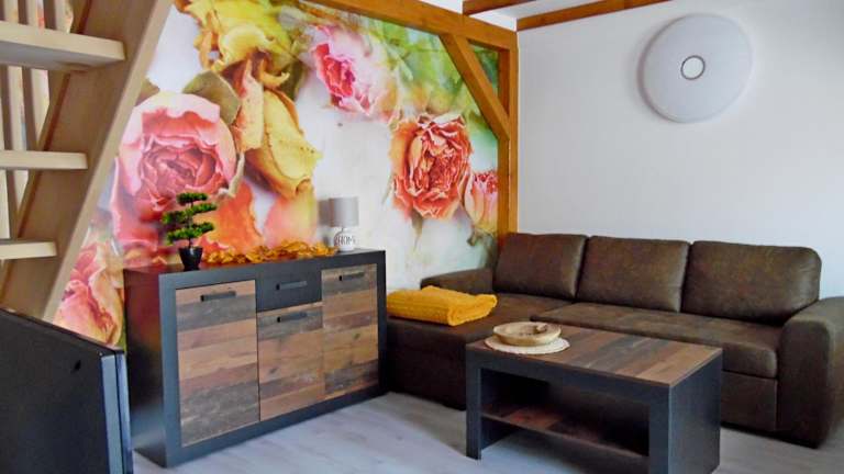 Das Ferienhaus umfasst zwei Schlafzimmer, ein Wohnzimmer und eine voll ausgestattete Küche mit Kühlschrank und Kaffeemaschine. Das Badezimmer ist mit einer Dusche und einem Haartrockner ausgestattet. Handtücher und Bettwäsche werden bereitgestellt.